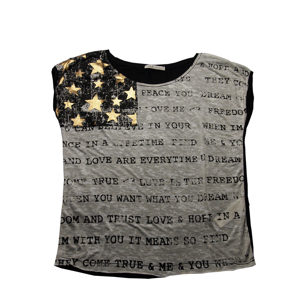H&B WITH LOVE STARS AND STRIPES PRINTED T-SHIRT - BLACK